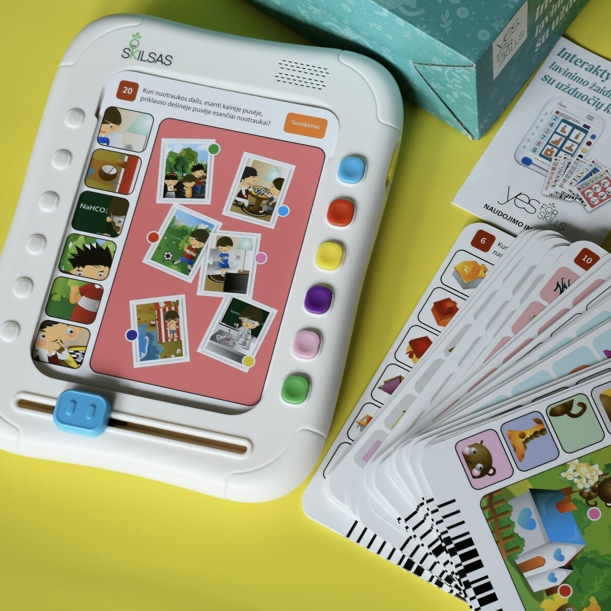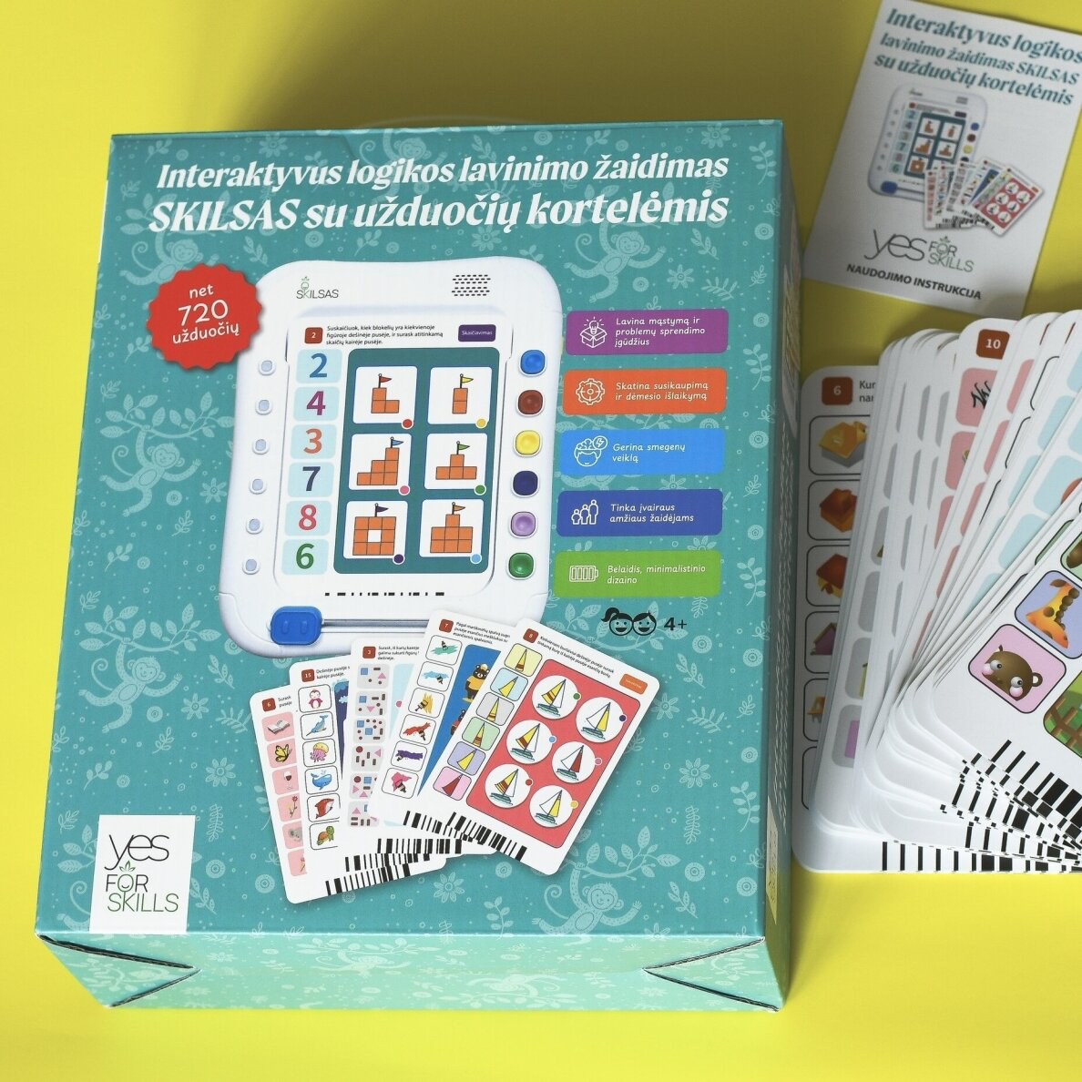 Ar Jūsų vaikas mėgsta atlikti įvairias skirtingiems įgūdžiams lavinti skirtas užduotėles? Galbūt įvairios užduočių knygutės su lipdukais dažnai patenka į Jūsų prekių krepšelį? Nuolat ieškote išskirtinių ir modernių vaikams lavinti skirtų priemonių? Galbūt siekiate sumažinti laiko, kurį vaikas praleidžia naudodamasis kompiuteriu, planšete ar telefonu, trukmę? Yes For Skills pristato universalų sprendimą – interaktyvių mokymuisi skirtą žaidimą su užduočių kortelėmis „Skilsas“.