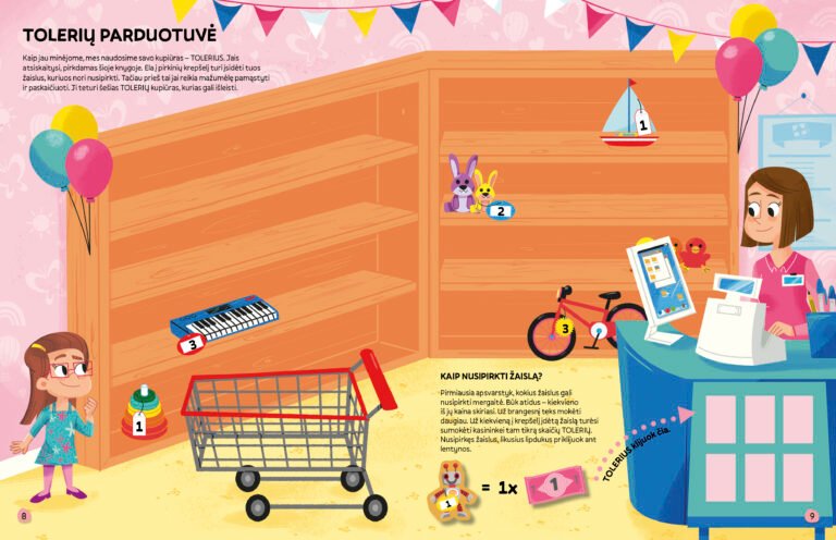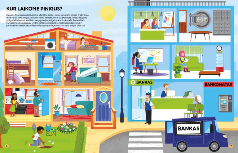 Ši patraukli lipdukų knyga supažindins vaikus, kaip elgtis su pinigais! Regėdami spalvingus paveikslėlius ir daugybę lipdukų, vaikai išmoks atskirti brangius daiktus nuo pigių, suvoks, kurie iš jų būtini, o kurie – ne itin. Visai nebūtina mokėti skaičiuoti – prireiks tik kurti, remontuoti ir renovuoti žaidžiant. Į reikiamas vietas įklijuodami banknotus, vaikai intuityviai suvoks įvairių kupiūrų vertes. O tie, kurie mėgsta skaičiuoti, čia ras daugybę banknotų, kurie padės lavinti smulkiosios motorikos įgūdžius.